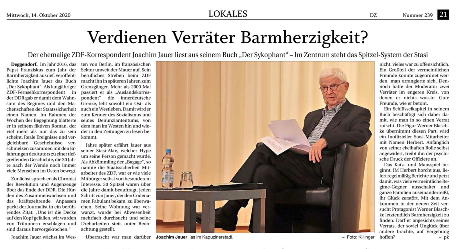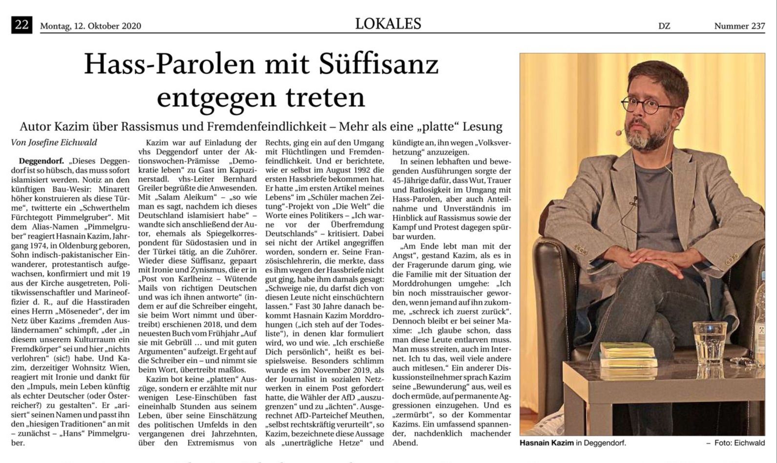 Lesung mit Haznain Kazim aus seinem Buch "Auf sie mit Gebrüll" am 8.10.2020 im Kapuzinerstadl Deggendorf
