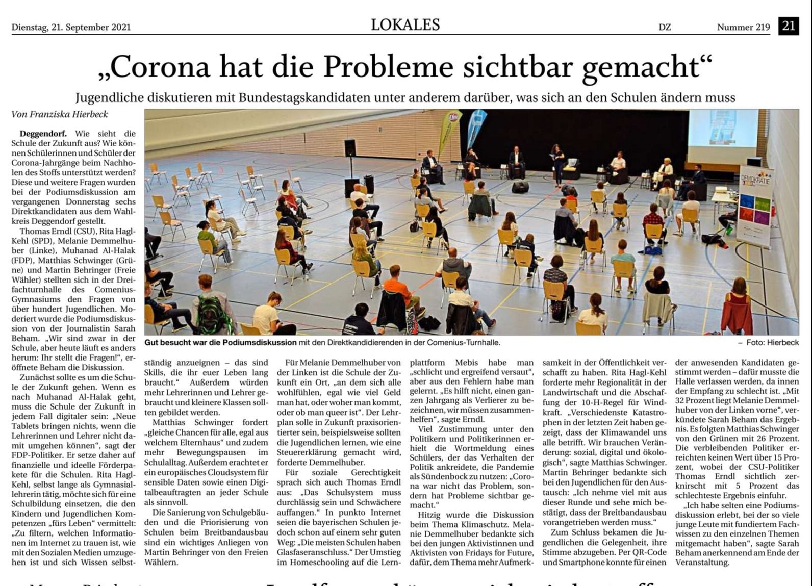 Zeitzeugengespräch mit dem Holocausüberlebenden Erich Finsches in der Deggendorfer Stadthalle am 18.10.2019