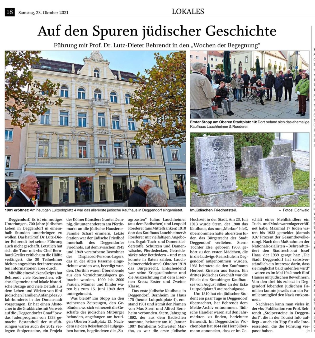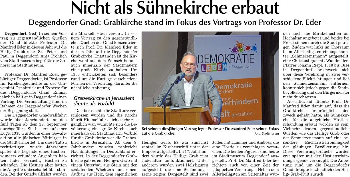 Deggendorfer Stolpersteine - Vortrag von Prof. Dr. Lutz-Dieter Behrendt, 2021