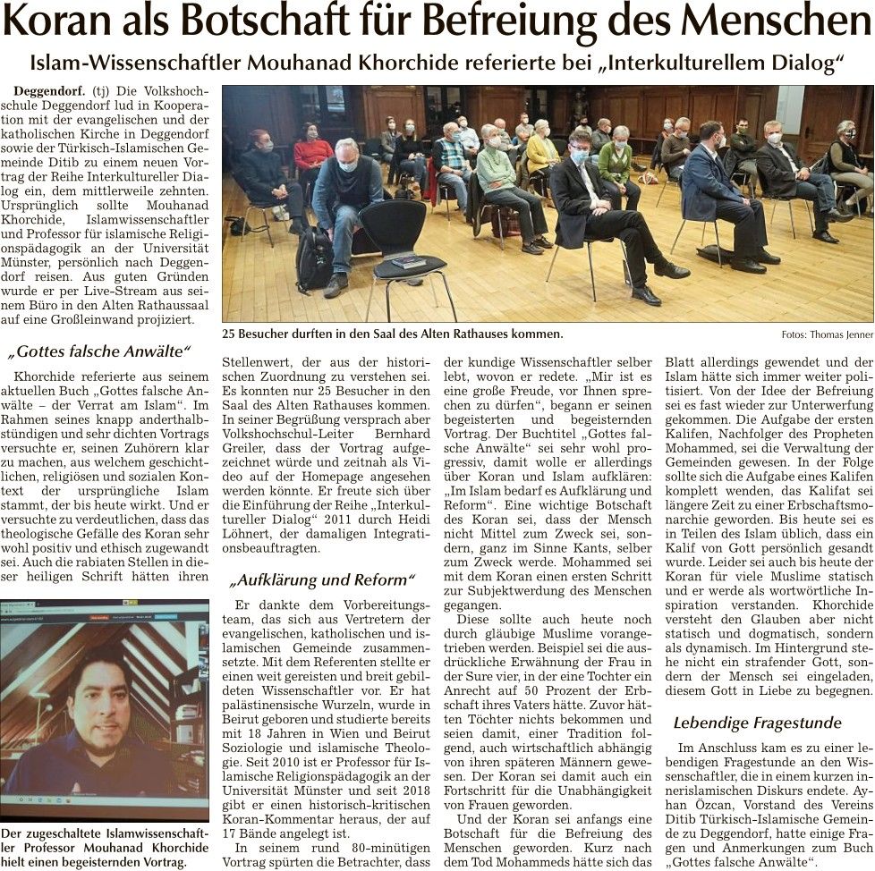 Interreligiöser Dialog: Vortrag mit Mouhanad Khorchide "auf dem Weg zu einem aufgeklärten Islam, am 28.10.2020