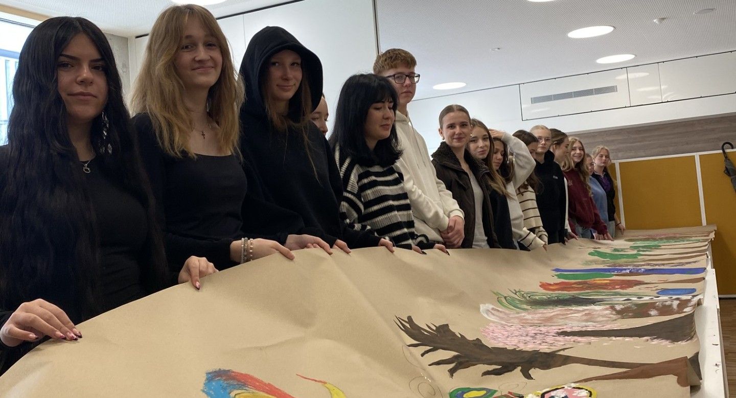 Unter Anleitung einer Kunsttherapeutin gestalten Schülerinnen und Schüler einen "Wald der Demokratie": Stamm und Krone stehen für die individuelle Stimme, vernetzte Wurzeln symbolisieren Werte wie Respekt, Solidarität und Mitbestimmung und die "Früchte der Demokratie" sind konkrete Beispiele demokratischen Handelns im Schulalltag. Die fertige Gemeinschaftsarbeit wird dauerhaft im Foyer der Schule ausgestellt und kann von künftigen Schuljahrgängen ergänzt werden.