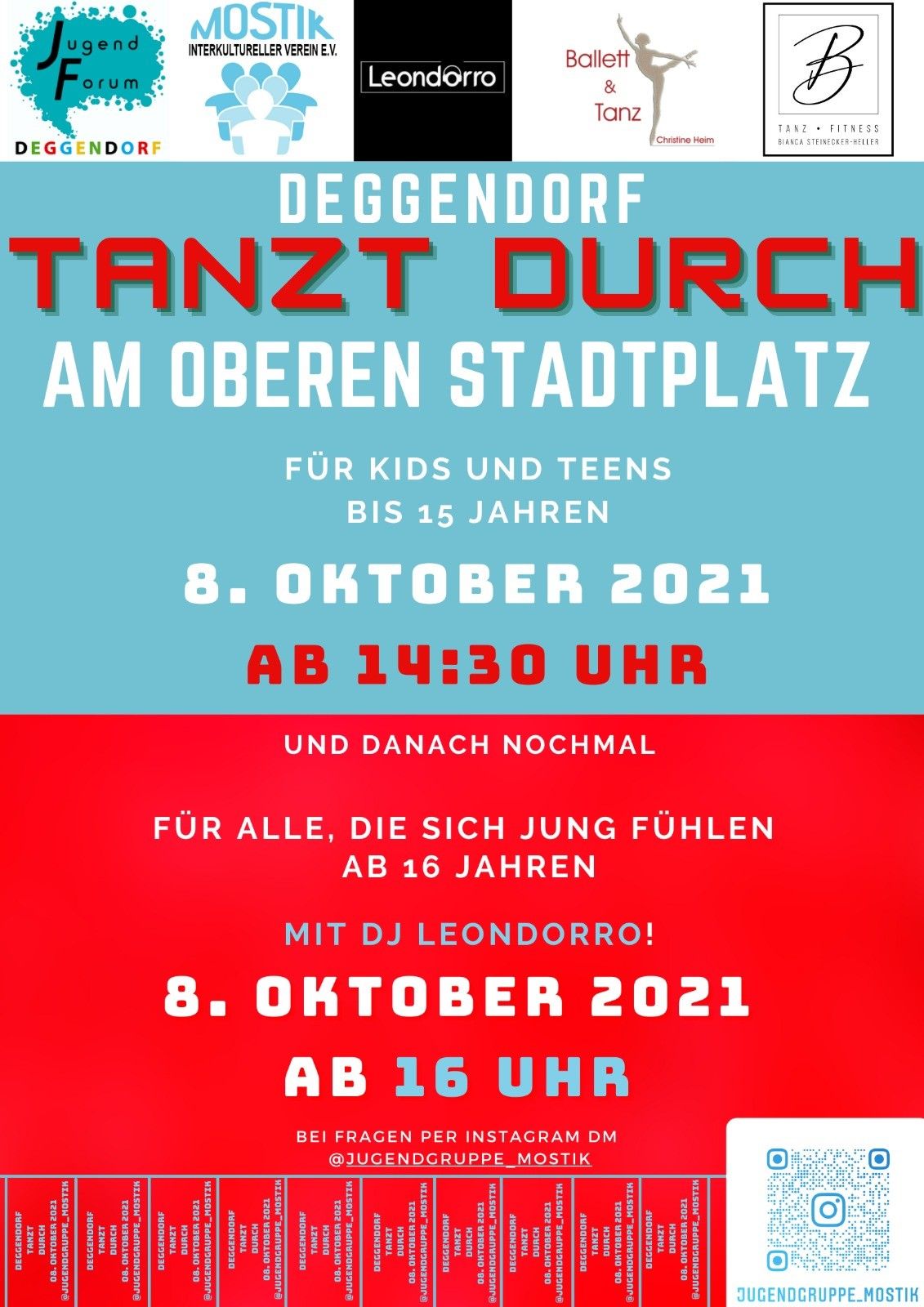 Mit dem Tanz-Event am Stadtplatz möchte die Jugendgruppe des Vereins Mostik ein Zeichen für Vielfalt setzen. Ab 14:30 Uhr sind alle Kinder und ab 16:30 Uhr Jugendliche und junge Erwachsene eingeladen zum mittanzen, natürlich mit entsprechendem Abstand. Mit dabei sind Tanzschulen, Profitänzer und ein DJ.