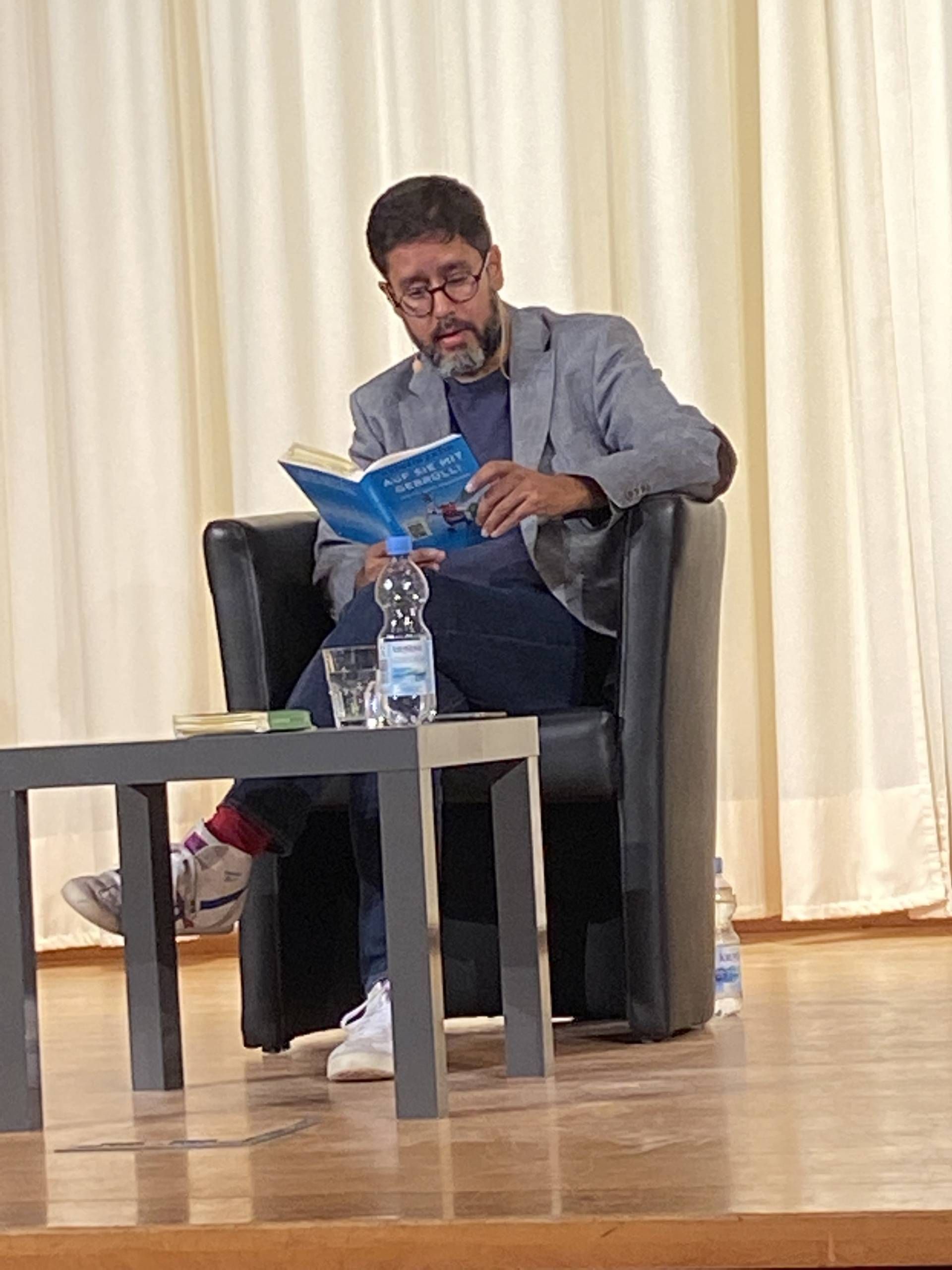 Jaromir Konecys lies aus seinem humoristischen Roman über Flucht und Migration. Der gebürtige Prager emigrierte 1982 in die BRD. Heute arbeitet er als freier Schriftsteller, Bühnenliterat und Wissenschaftskabarettist in München. Er ist einer der Mitbegründer der Proetry-Salm-Szene und zweifacher Vizemeister der deutschasprachigen Poetry-Slam-Meisterschaften.