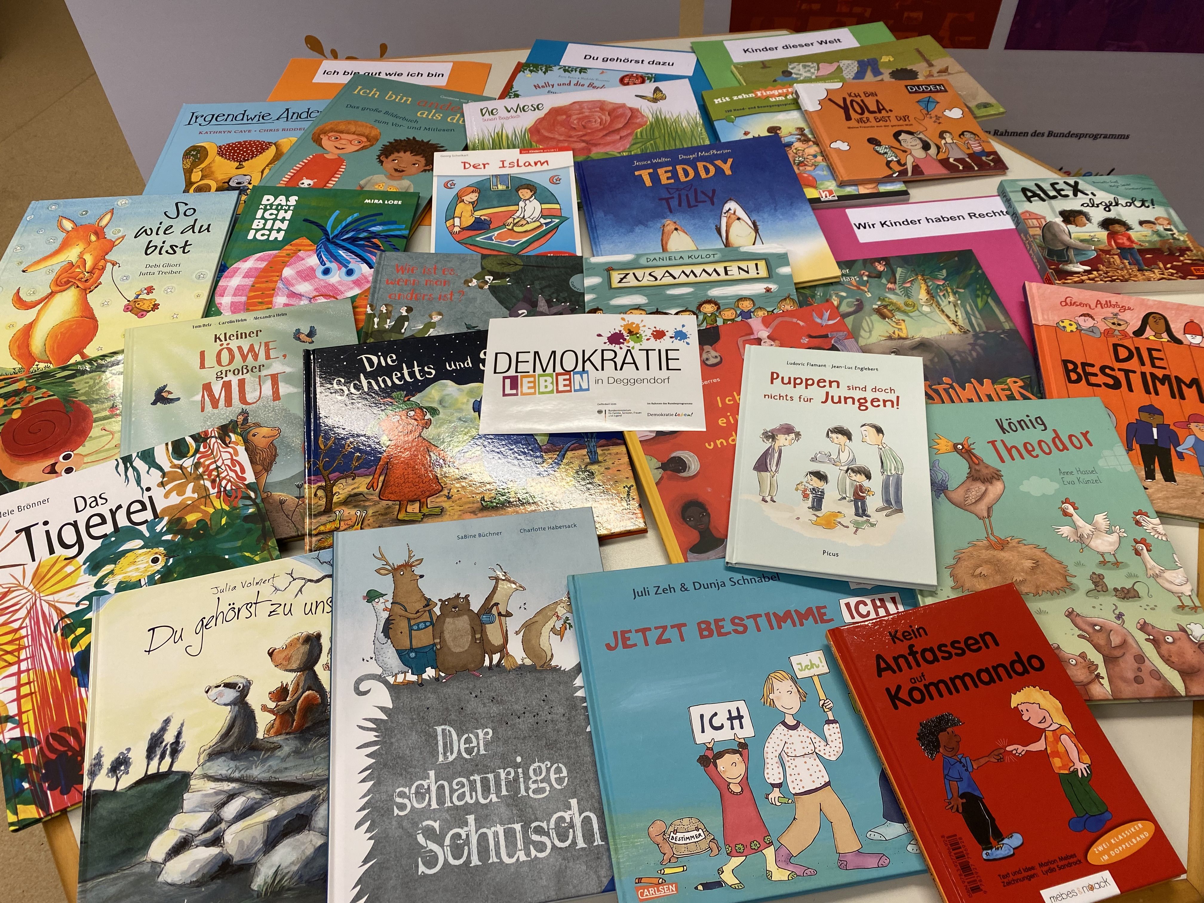 Mit dem Projekt „Demokratie lesen in der Kita“ werden den Kindergärten der Stadt Deggendorf Bücher zur Verfügung gestellt, die es ermöglichen, bereits bei 3- bis 6-Jährigen demokratische Grundwerte wie Toleranz und Respekt zu verinnerlichen. Die Kisten enthalten insgesamt 28 Kinderbücher und fördern nachhaltig das Verständnis von Vielfalt und Toleranz, beschäftigen sich mit Kinderrechten und zeigen, wie Mitbestimmung schon im Kindergarten funktionieren kann. Die Geschichten sollen den Kindern Mut machen und ihre Entwicklung zu starken, verantwortungsvollen, und empathischen Persönlichkeiten fördern, egal woher sie kommen, welche Hautfarbe sie haben, wie sie aussehen oder welche Fähigkeiten sie besitzen. Spannung und Spaß dürfen dabei natürlich nicht zu kurz kommen wie z.B. bei den Büchern „Die Schnetts und die Schmoos“, „Du gehörst zu uns“ oder „König Theodor“. Ein wichtiger Aspekt des Projekts ist das gemeinsame (Vor-)Lesen und das Besprechen des Gehörten in der Gruppe. Die Bücherkiste enthält deshalb auch weitere Anregungen und Informationen zum Vorlesen und zur Demokratieerziehung in der Kita.