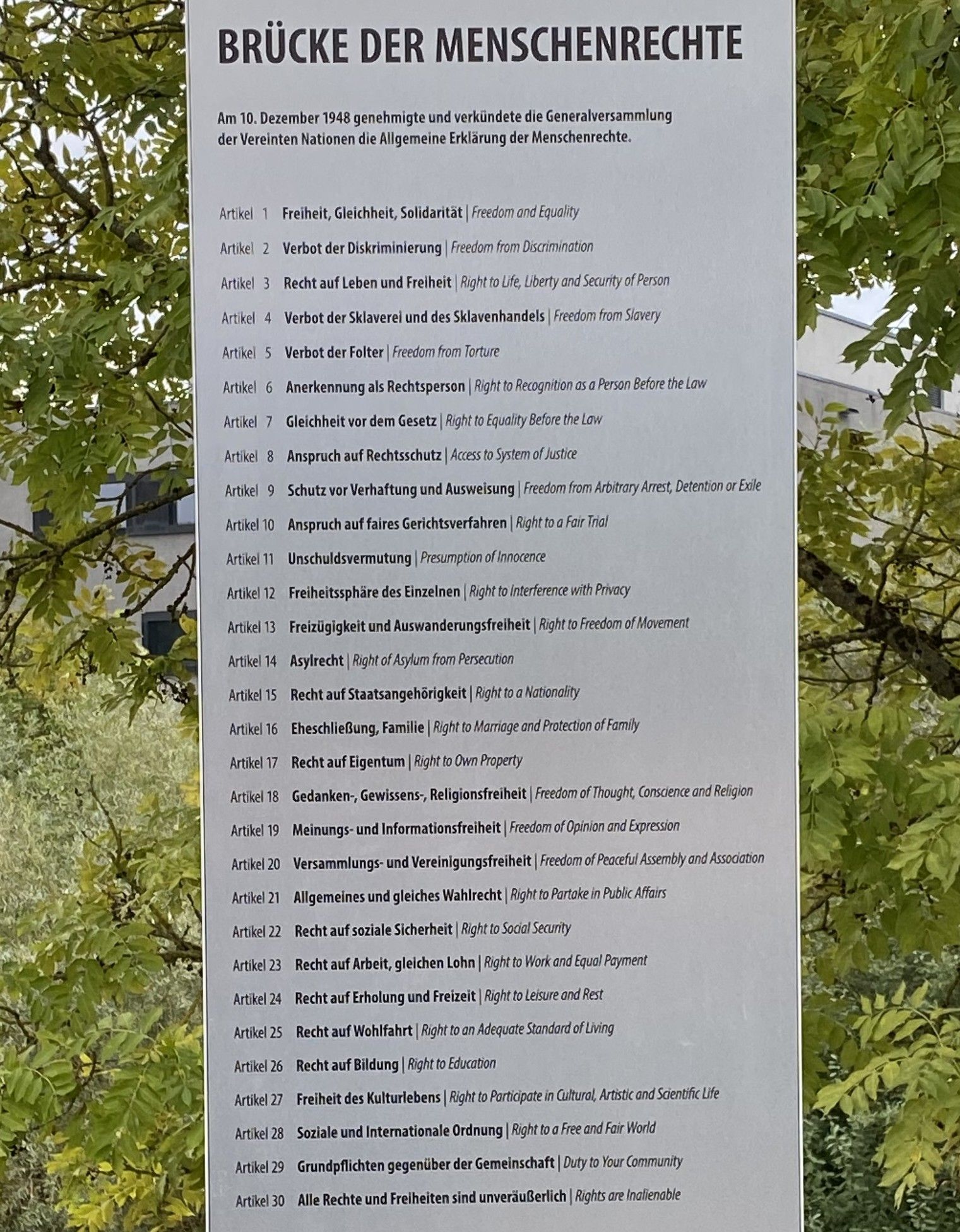 Die Rechte der Menschen haben die Vereinten Nationen nach den Gräueln des 2. Weltkriegs zusammengestellt. Aber für viele Autoren sind und waren sie schon immer ein Thema zum Nachdenken. Zu Wort kommen Texte von Autoren wie Immanuel Kant, Christian Springer, Erich Kästner, Konstantin Wecker u. v. m.. Begleitet wird die Zeit um Nachdenken vom Klassischen Gitarrenduo Kristina und Magdalena Anderl.