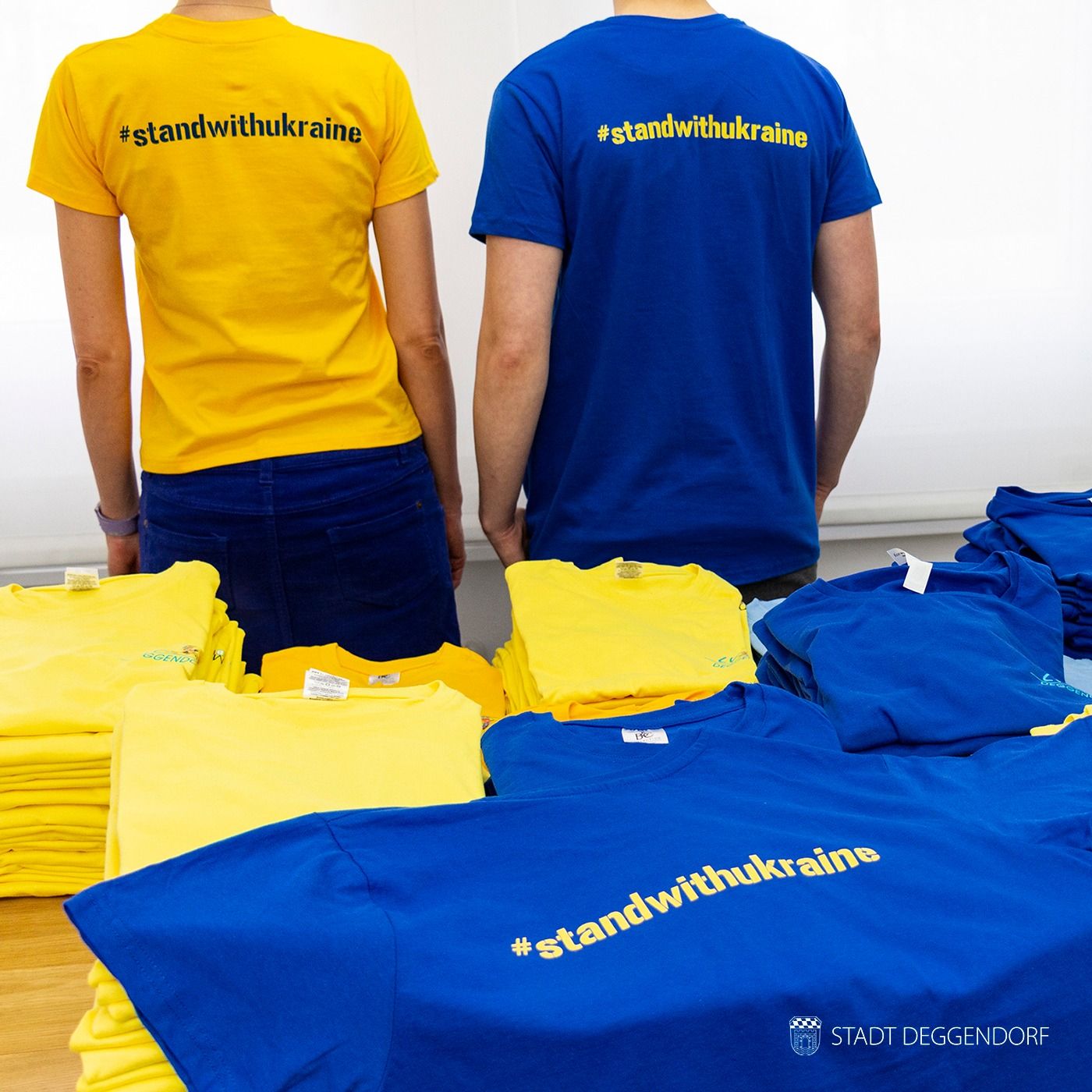 Die Teilnehmerinnen und Teilnehmer des Friedenslaufs solidarisieren sich mit den Menschen in und aus der Urkraine. Für den Lauf tragen sie ein T-Shirt mit einem Emblem in den Farben der Ukraine (blau und gelb), das ihnen zur Verfügung gestellt wird. Es geht darum, den völkerrechtswidrigen Angriff Russlands zu verurteilen und den Menschen Mut zu machen - auch den hier lebenden Menschen, die angesichts des Krieges und der Ungewissheit bangen.